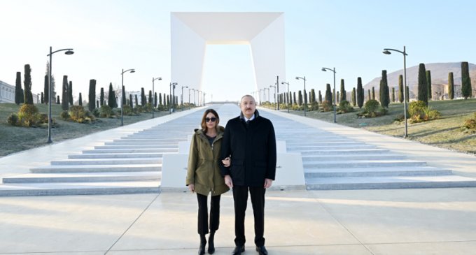 Azərbaycan Respublikasının Prezidenti İlham Əliyev və birinci xanım Mehriban Əliyeva dekabrın 24-də Xankəndi şəhərində Zəfər parkının açılışında iştirak ediblər.