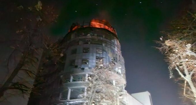 Xarkovun mərkəzində çoxmərtəbəli binaya dron zərbəsi endirilib