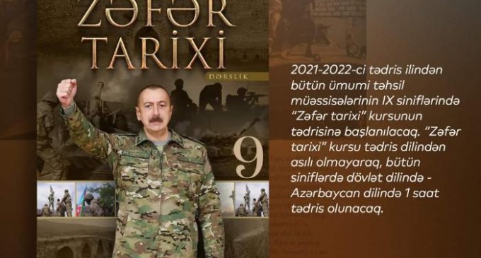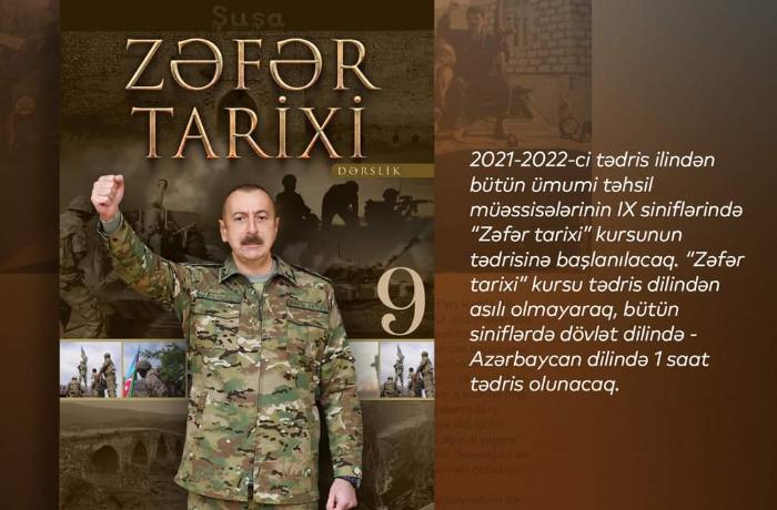 Bildiyiniz kimi, 2021-2022-ci tədris ilindən bütün ümumi təhsil müəssisələrinin IX siniflərində "Zəfər tarixi” kursunun tədrisinə başlanılacaq.