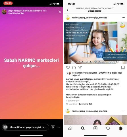 Qaynarinfo xəbər verir ki, həmin qərardan sonra "Narınc” Psixologiya Mərkəzi sosial səhifəsində elan verərək martın 3-dən 9-dək fəaliyyətdə olacağını açıqlayıb: