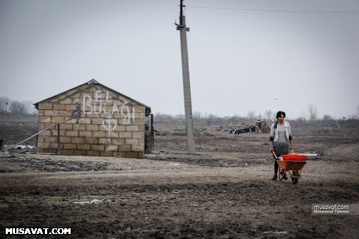 "Su yoxdur. Nə içməyə, nə də ağac əkməyə. Suyu nisyə alırıq. Gedib soruşuram, baxıram ki, 10-15 maşın suyun pulunu borcluyam. Guya gətirib su çəni qoyublar ki, su çəkəcəklər. Amma qoyub getdilər” - deyən Qənirə xanım ətrafdakı evləri göstərir və burada yaşayan hər kəsin işsiz və çarəsiz olduğunu izah etməyə çalışır.