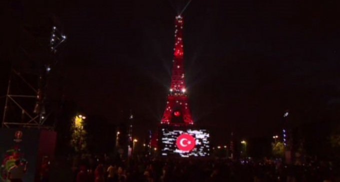 İyunun 12-də Parisdəki Eyfel qülləsi Türkiyə bayrağının rənglərinə büründü.