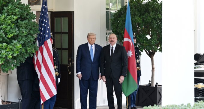Dövlət başçısını Ağ Evdə ABŞ lideri Donald Tramp qarşılayıb.