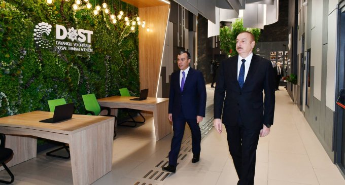 Azərbaycan Respublikasının Prezidenti İlham Əliyev dekabrın 28-də Əmək və Əhalinin Sosial Müdafiəsi Nazirliyinin tabeliyində olan Dayanıqlı və Operativ Sosial Təminat Agentliyinin Bakının Xətai rayonunda yerləşən 5 saylı DOST Mərkəzinin açılışında iştirak edib.