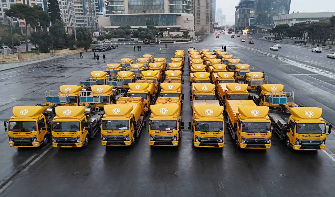 Bildirilib ki, burada "İVECO” və "Dong Feng” şirkətlərinin istehsalı olan müxtəlif kommunal işlər üçün nəzərdə tutulan nəqliyyat vasitələri və texnikalar var. Nəqliyyat vasitələrinin əksəriyyəti tam elektrikli olmaqla, ekoloji cəhətdən ətraf mühitə ziyan vurmadan çalışır.