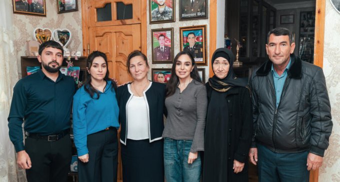 Qlobal.az xəbər verir ki, səfər çərçivəsində Leyla Əliyeva əvvəlcə Vətən uğrunda canlarını fəda etmiş şəhid qardaşlar Əhmədovların ailəsini ziyarət edib.