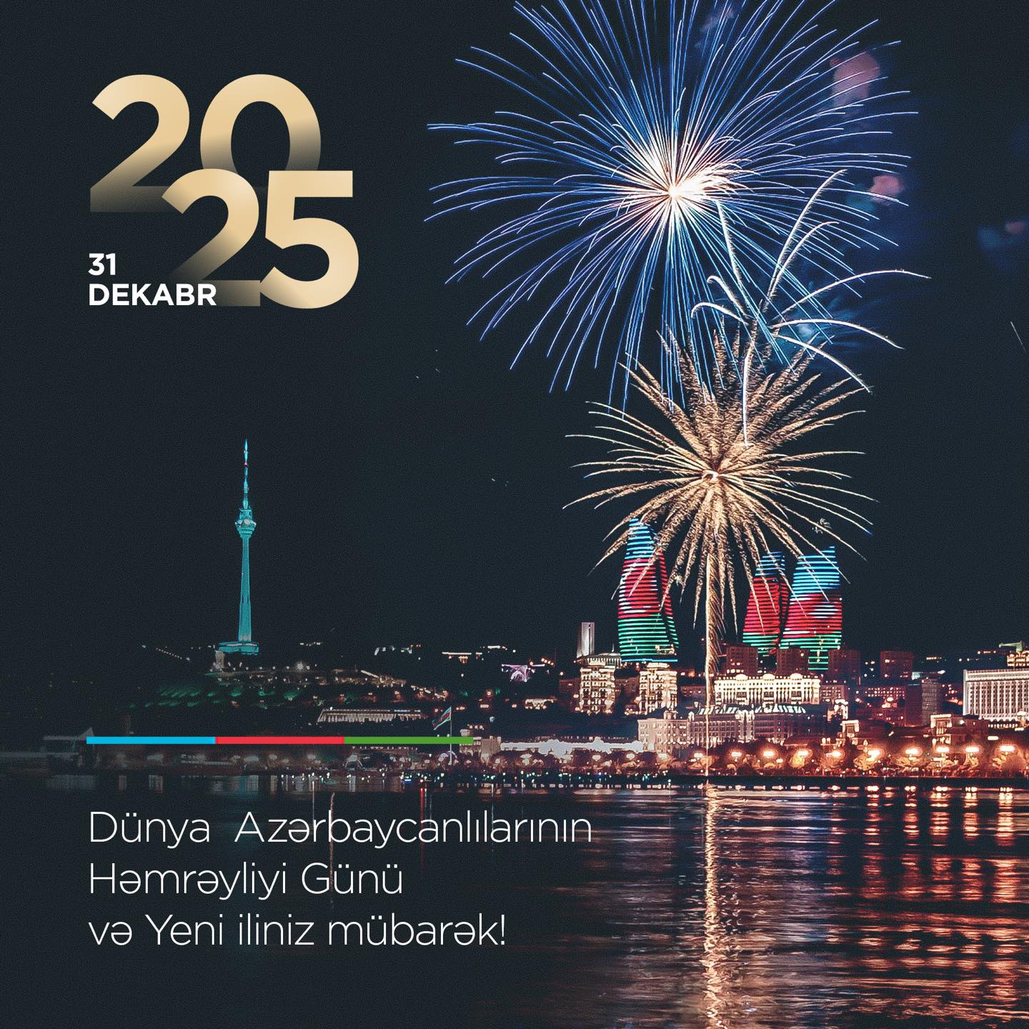Qlobal.az xəbər verir ki, paylaşımda deyilir: "Sizi 31 Dekabr – Dünya Azərbaycanlılarının Həmrəyliyi Günü və qarşıdan gələn Yeni il münasibətilə səmimi-qəlbdən təbrik edirəm! Qoy Tanrı öz mərhəmətini xalqımızdan heç zaman əsirgəməsin! Qoy yer üzündəki bütün azərbaycanlılar sağlam və xoşbəxt olsunlar! Sizə və ailələrinizə möhkəm cansağlığı, xoş ovqat, sevinc və xoşbəxtlik arzulayıram!
