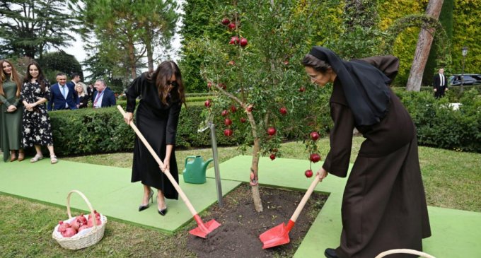 Oktyabrın 17-də Azərbaycan Respublikasının Birinci vitse-prezidenti Mehriban Əliyeva və ailə üzvləri Vatikan şəhər-dövlətinin qubernatorluğunun prezidenti, rahibə Raffaella Petrini ilə birgə Vatikan bağlarında ağacəkmə mərasimində iştirak ediblər.