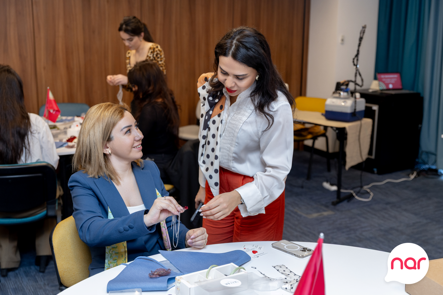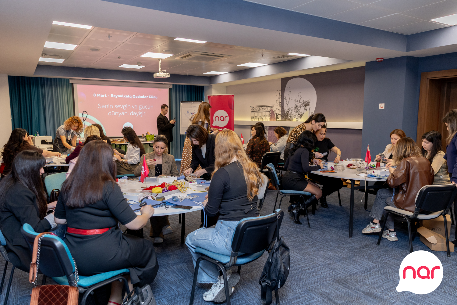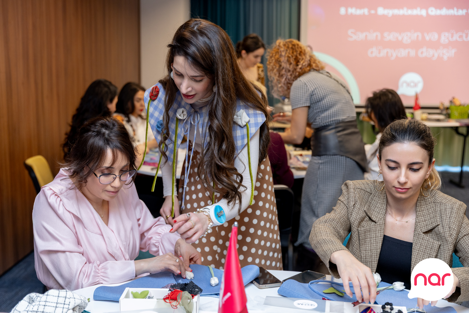 "Nar” 8 Mart – Beynəlxalq Qadınlar Günü münasibətilə xanım jurnalistlər üçün xüsusi tədbir təşkil edib. Media nümayəndələri üçün keçirilən incəsənət master-klassında iştirakçılar Azərbaycanın yerli brendinin təcrübəli təlimçilərinin dəstəyi ilə öz zövqlərini və fərdi üslublarını əks etdirən yaxalıqlar hazırlayıblar. Yaradıcılıq prosesi iştirakçılar üçün həm estetik təcrübə, həm də ünsiyyət və paylaşım imkanı yaradıb.