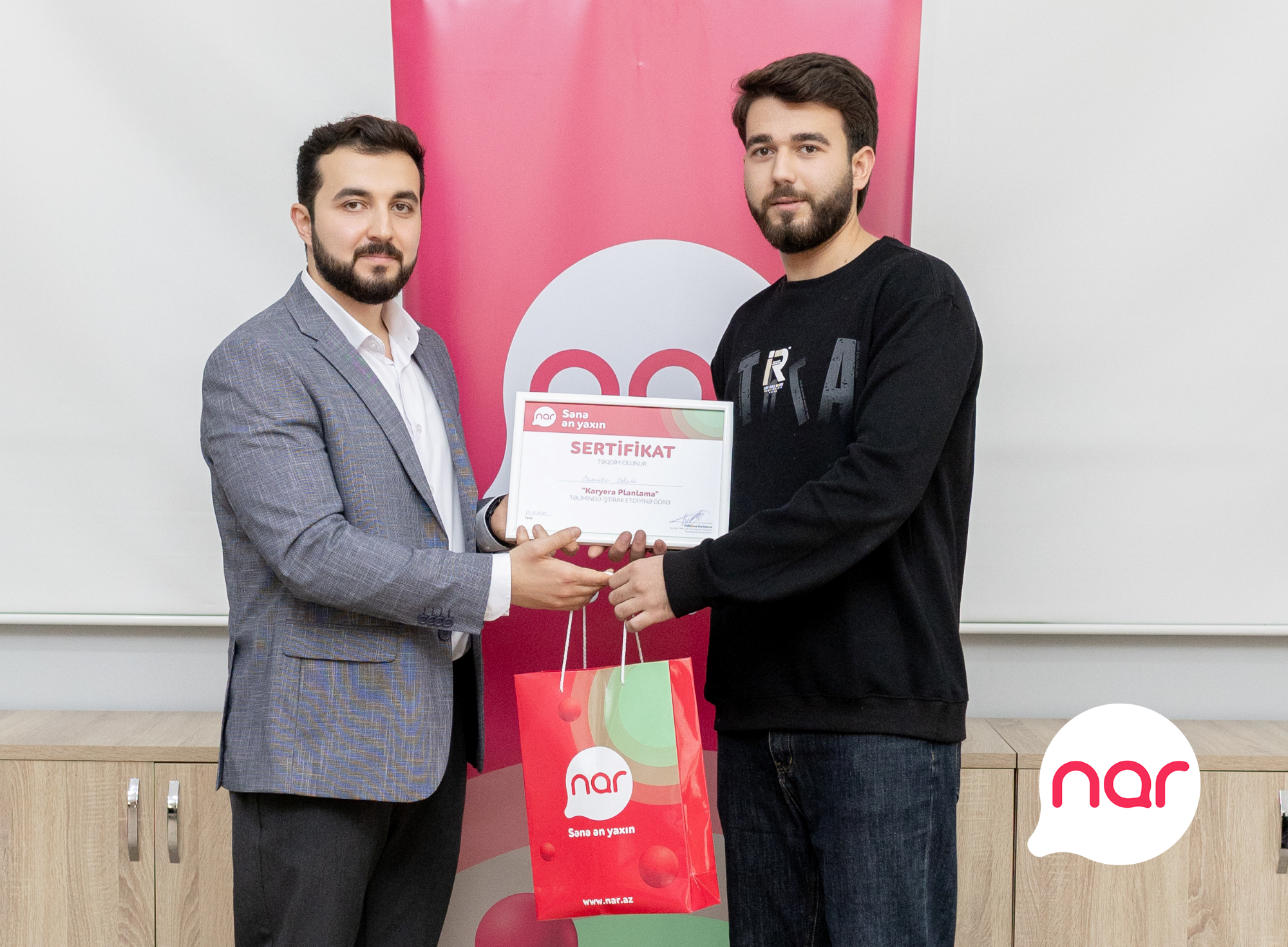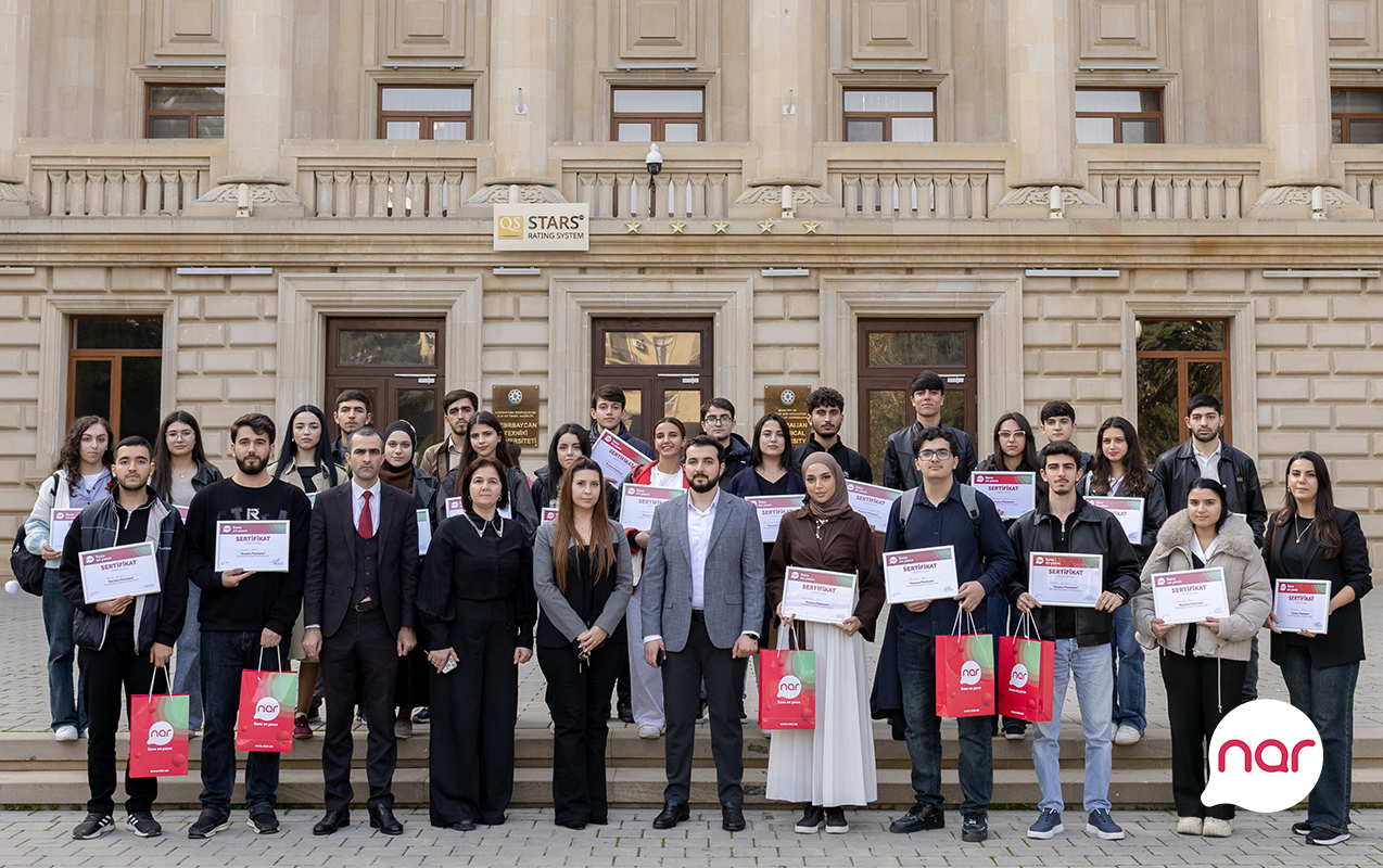 İnteraktiv formatda təşkil olunan təlimdə tələbələrin telekommunikasiya sahəsinə, mobil operatorun daxili proseslərinə və təcrübə proqramlarına dair sualları cavablandırılıb. Sonda iştirakçılara təlimdə iştiraklarını təsdiq edən Nar tərəfindən sertifikatlar təqdim edilib. Təlim zamanı xüsusi fərqlənən tələbələr Nar tərəfindən dəyərli hədiyyələrlə mükafatlandırılıb.
