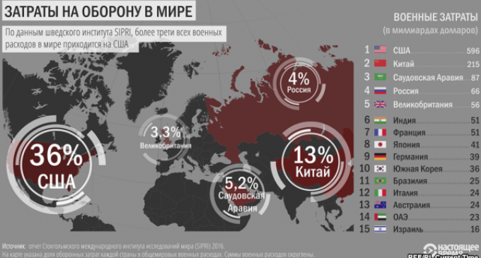 SIPRI-nın hesablamalarına görə, bu ilin əvvəlində Rusiyada 7 min 290, ABŞ-da isə 7 min nüvə başlığı olub. Fransa 300 nüvə silahı var. Ondan sonra Çin (260), Britaniya (215), Pakistan (110-130), Hindistan (100-120), İsrail (80), Şimali Koreya (10) gəlir.