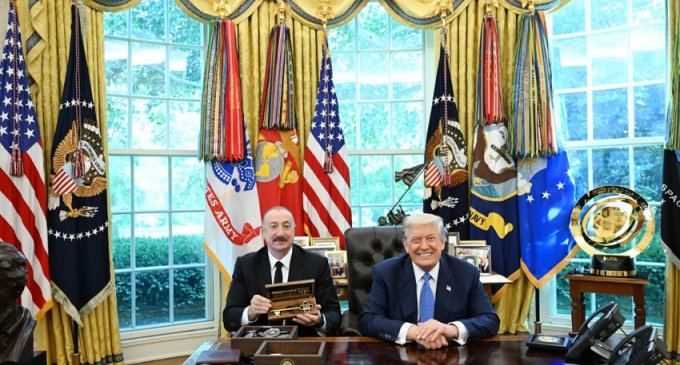 Tramp Ağ Evin rəmzi açarını İlham Əliyevə təqdim etdi