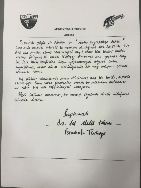 Moskvada keçirilən "Art-Futbol” çempionatında iştirak edən türkiyəli məşhur aktyor, jurnalist və futbolçular Rusiyanın Türkiyə tərəfindən vurulan Su-24 bombardmançısının həlak olan pilotu Oleq Peşkovun ailəsinə məktub göndərib.