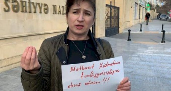 Jurnalist Aynur Elgünəş Səhiyyə Nazirliyinin qarşısında etiraz aksiyası keçirib.
